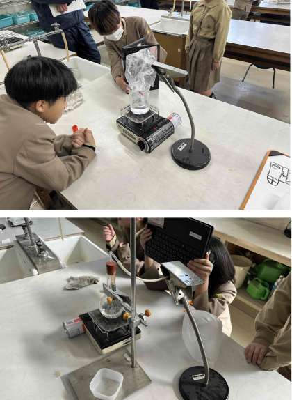 実験装置を自分たちで考えて組み立て、実験に挑みました。