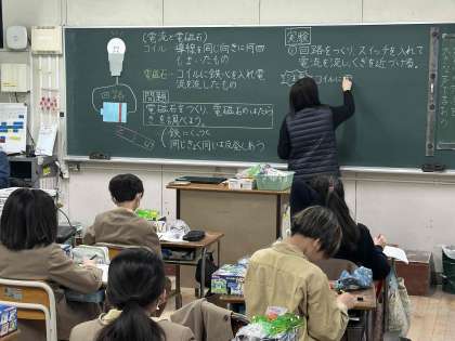 まずは電磁石づくりです。実験道具を作ることに一苦労でしたが、