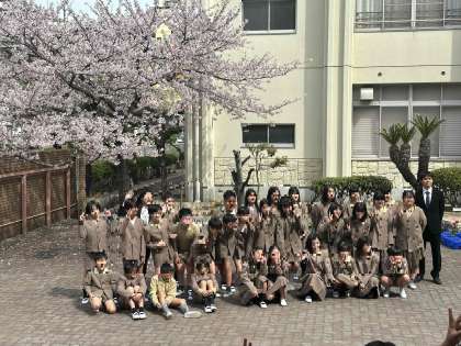 桜の木の下で学級写真を撮る学年もありました。