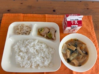 もやしは、苦手な児童が多い食材ですが、この献立は好きな児童が多い献立です。1,2年生のクラスでも食缶が空になっていました。お配りしている献立表を参考にして、ぜひご家庭でも作ってみてください。(栄養教諭)