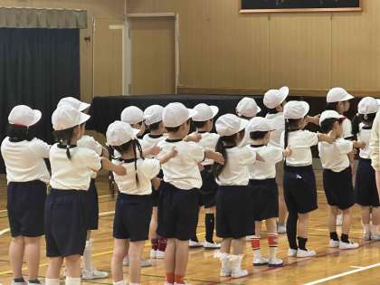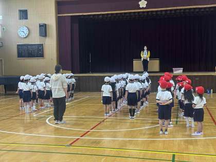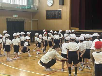 集団行動の基本となる、並び方、前へならえ、やすめ、回れ右などを練習しました。