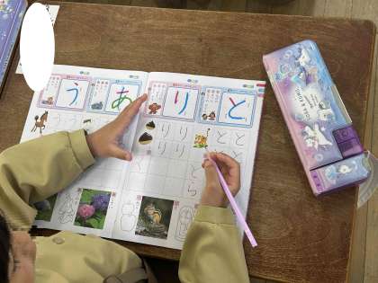 子どもたちは、どの部屋から書き始めて、どの部屋で書き終わるのかを先生と確認しながら練習をしました。