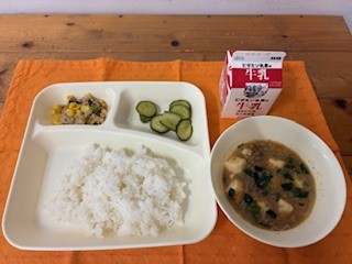 マーボーどうふ、きゅうりの中華あえ、ツナとチンゲンサイのいためもの、ごはん、牛乳