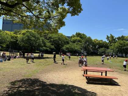 鬼ごっこをしたり、四つ葉のクローバーを探したり、とても楽しそうです。