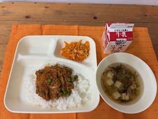 タコライス、とうふともずくのとろり汁、にんじんしりしり風、牛乳