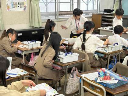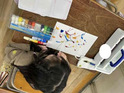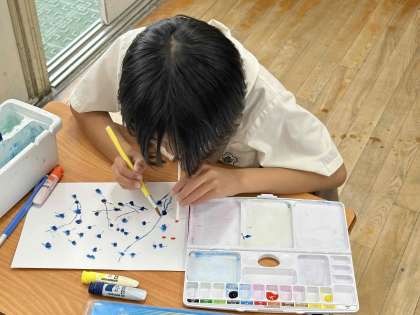 ポトンッと落とした絵具を、ストローで吹いて、模様を描きました。
