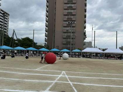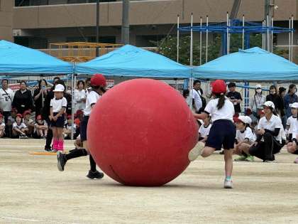 自分たちの身長と変わらないくらい大きな大玉を、力を合わせて運ぶ姿は素晴らしかったです。競技前の振りもかわいかったです。