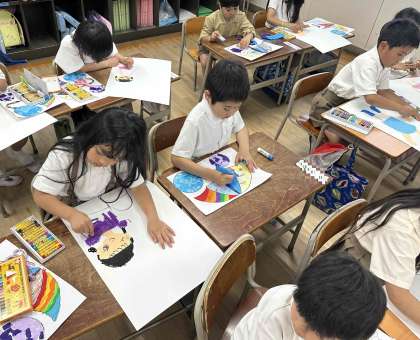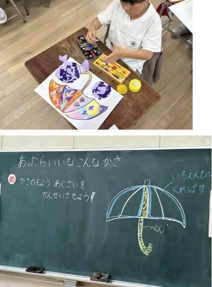 塗ったり、貼ったりして、個性豊かな傘ができていました。