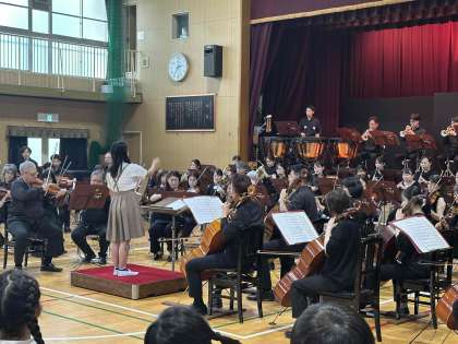 オーケストラバージョンでの校歌は、これまでで一番大きな声で素敵な歌声を聞かせてくれました。先生方が驚くほどでした。