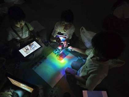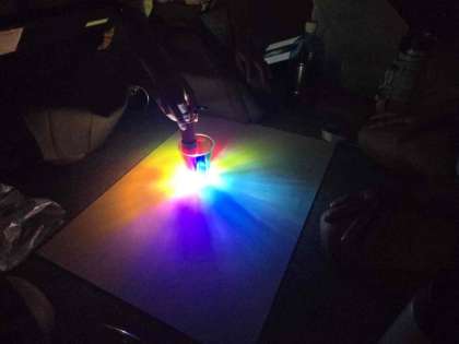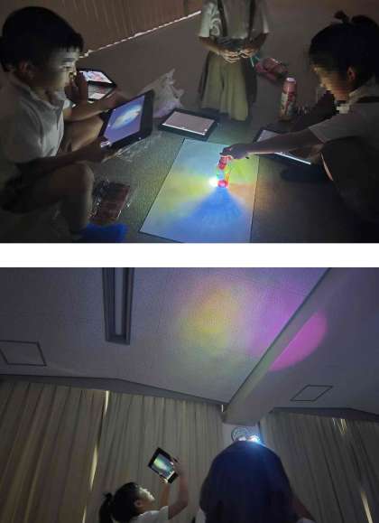 自分たちで作った作品に、光を当てると、こんなにきれいな模様ができました。