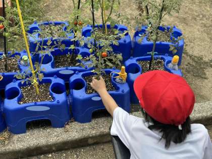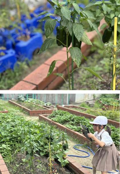 2年生が育てているミニトマトとピーマンの観察に行きました。