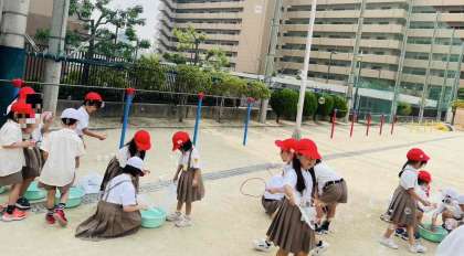 今日の日ために、先生たちは石けん液を工夫し、練習をしていました。