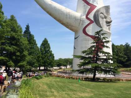 5月17日(火)は、4年生の遠足です。万博公園へ行ってきました。朝までの雨がうそのようなさわやかな一日になりました。最初は“自然観察学習館”を見学し、万博公園に生息する多くの生き物を見ました。次に巨大な太陽の塔を見上げて子ども達の歓声があがっていました。そのあとは待ちに待ったお弁当。おやつを食べた後は芝生の上でしっかり遊びました。最後に“ソラード(森の空中観察路)”を通って帰りました。