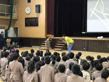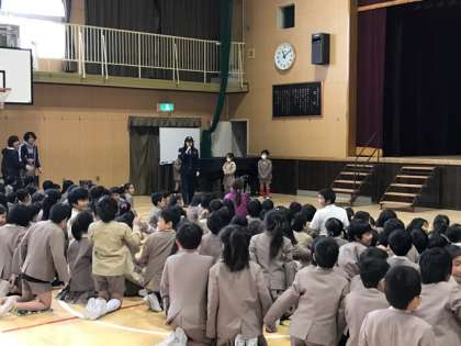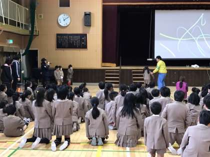 2年生と3年生が合同で防犯教室を行いました。町で知らない人に声をかけられたり、連れて行かれそうになったりしたらどうすればよいかを此花警察と此花区役所の安全パトロール隊の方が教えてくれました。
