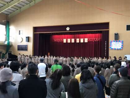 各学年から6年生へお祝いの言葉や歌などを送りました。