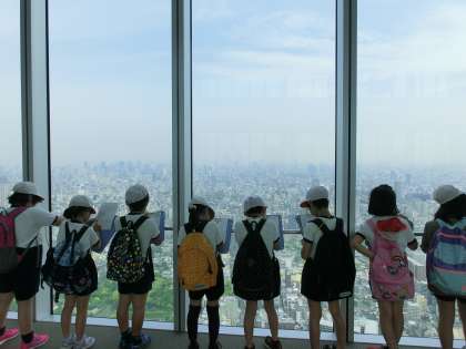 ハルカスの最上階で、クラスごとに見える物をメモしました。