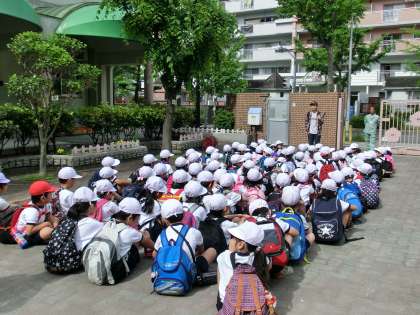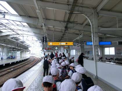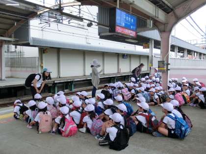 天王寺動物園に行きます。2列に並んで、目的地の天王寺駅へ