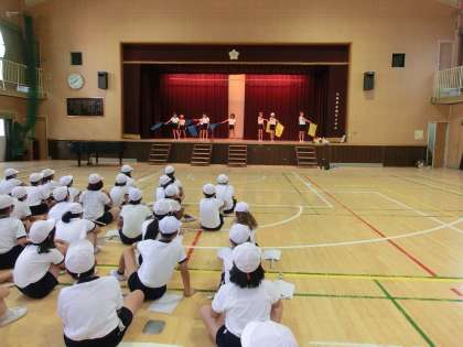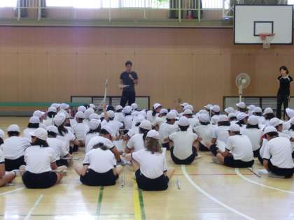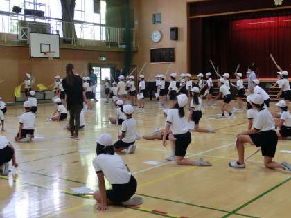 5時間目 講堂で5年生は団体演技の練習をしました。