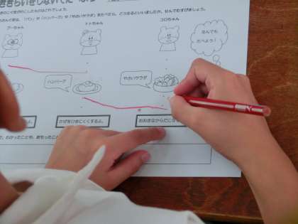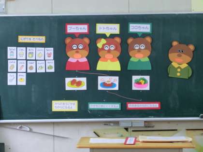 運動会の練習に励んでいますが、今週は1年生が「食育」をします。