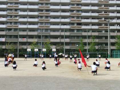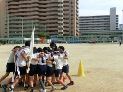 放課後、応援団の人は、運動場で練習をしました。大きな声を出していました。