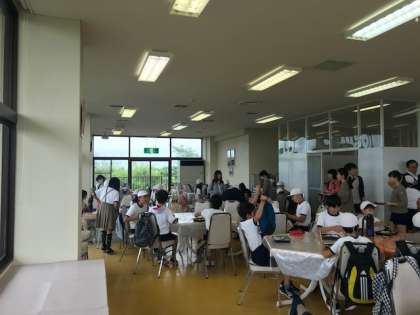 志摩自然学校に着き、昼食をします。雨が降っています。