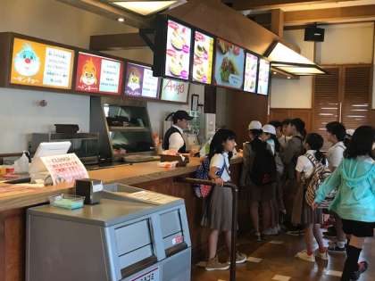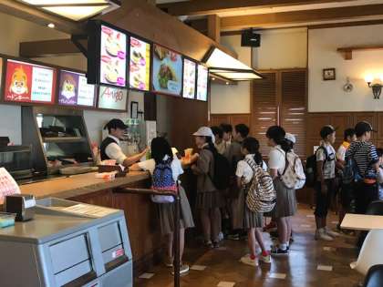 今日のスペイン村は空いていて乗り物にもいっぱい乗れてます。お昼はミールクーポンを使って昼食です。