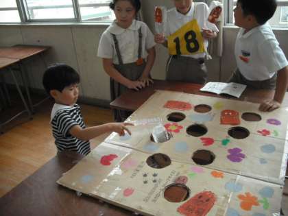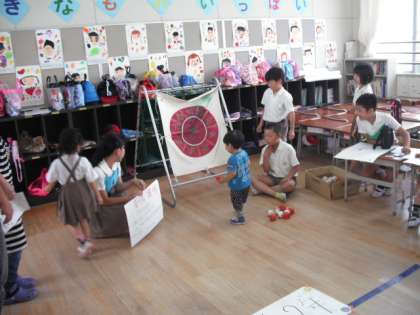 まとあて、モグラたたきや、魚つりには未来の小学生たちもたくさんさんかしてくれました。