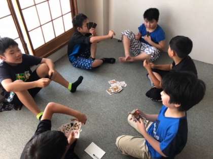 夕食までの楽しいひと時!それぞれ部屋でトランプなどをして過ごしています。