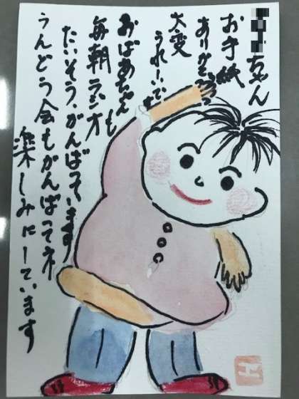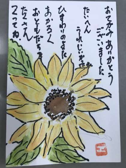 今朝学校のポストに絵手紙が届けられていました。よく見ると先日子どもたちが書いた「ふれあいの手紙」に対するお礼のお返事でした。日曜日に行われた「敬老会」に参加された方からでしょう。次の朝会で児童みんなに紹介し、お渡しさせていただきます。わざわざご丁寧にありがとうございました。