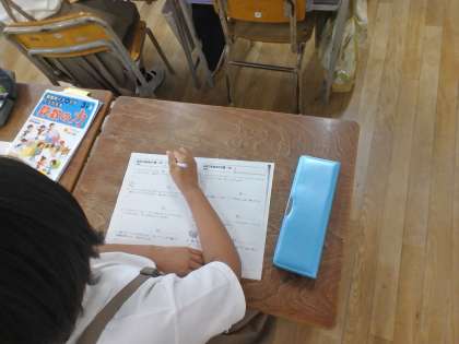 子どもたちはその説明を聞き、熱心にプリントに取り組んでいました。
