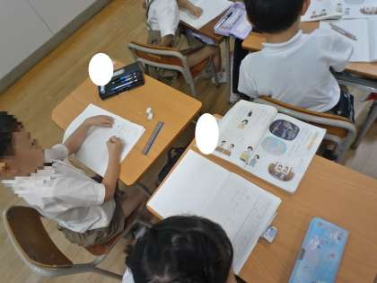 ワークシートに、はじめ・なか・おわり に分けてメモをし、