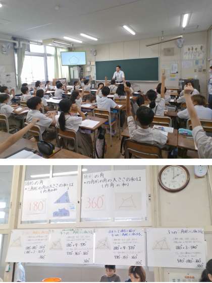 多角形の内角の和を求める学習に取り組みました。