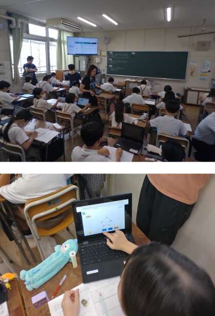 配られたシートに線を引く子、デジタルコンテンツを使って考える子、それぞれが使いやすい方法で、既習事項をまとめた側面掲示を参考にしながら取り組みました。