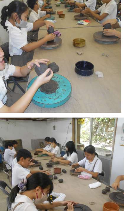 体験後は、施設の方が住んでおられたというお家で昼食をいただきました。広いお部屋、広い庭、いろいろな部屋が廊下でつながり、その所々に陶器が飾られていました。昔の日本の家屋を味わうことができました。