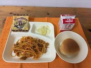 イタリアンスパゲッティ、サワーキャベツ、カレーフィッシュ、ミニコッペパン、牛乳