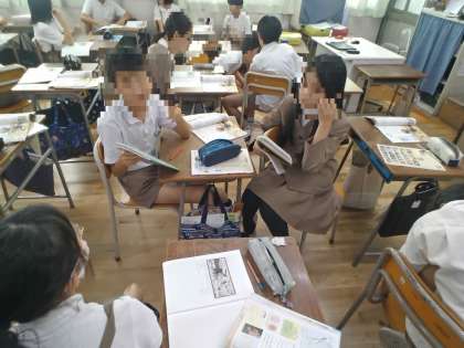 個々に見つけたことをグループで、全体で交流し、学びを深めました。