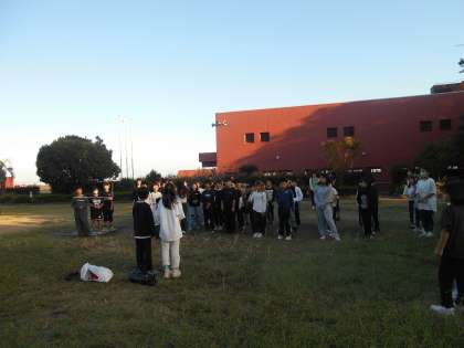 眠そうな子もいましたが、みんなでラジオ体操をして体を動かし、午前の体験に備えました。