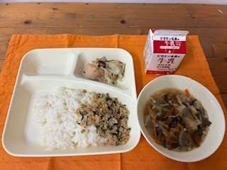 豆は苦手な児童もツナ大豆そぼろをごはんに混ぜておいしそうに食べていました。少しずつ豆が苦手でなくなってくれるとうれしいです。(栄養教諭)