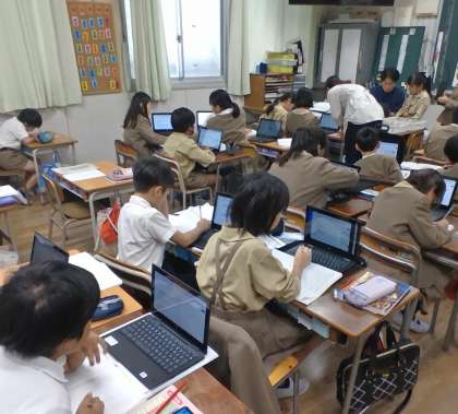 パソコンで調べる際は、タイピングに取り組んでいました。