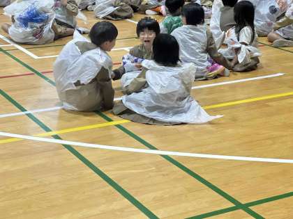 手作りの服を着て、じゃんけん列車や猛獣狩りに行こうなど、ゲームを楽しみました。