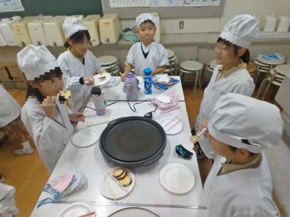 2年生が先日収穫したさつまいもを、ホットプレートで焼いて食べました。