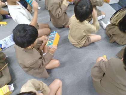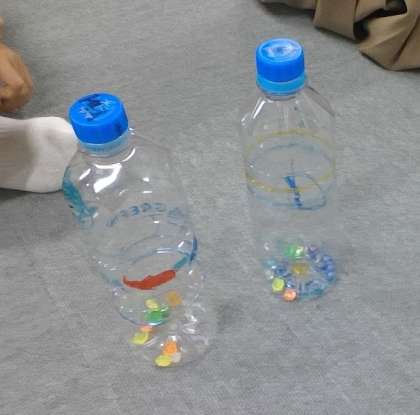 手づくり楽器のカスタネット、ギロ、マラカスの様子です。