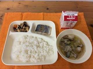 今日の給食には、「まごわやさしい」の食材がすべて使われていました。さごしに少し骨がありましたが、子どもたちはおいしそうに食べていました。(栄養教諭)