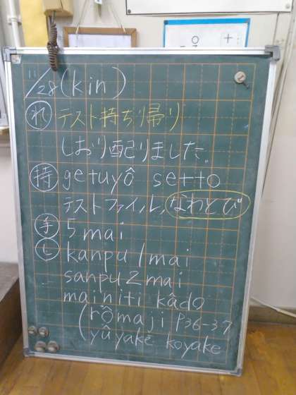 定着を図るため、担任の先生は連絡帳にもローマ字を使っています。