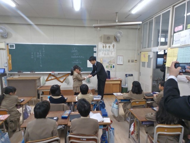 今日は贈呈式を行い、2年生が学校の代表として受け取りました。