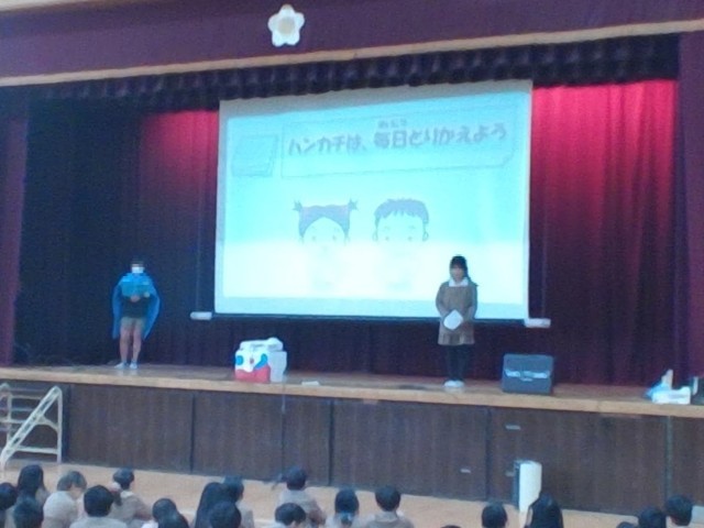 ハンカチを持つことの大切さ、手洗いの大切さ、手洗いの方法など