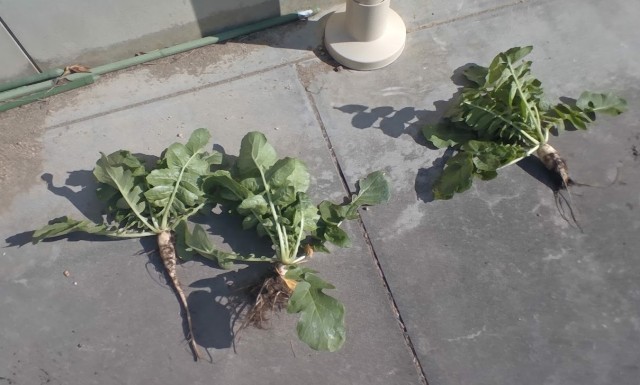 たくさんダイコンを収穫し、うれしそうでした。