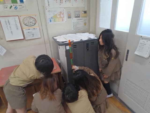 子どもたちは、様々な予想を立て、教室の1メートルさしを使って測っていました。