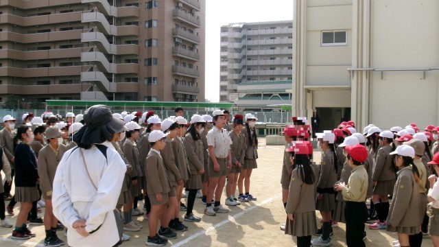 1~5年生が学年ごとに、毎日6年生と交流をします。