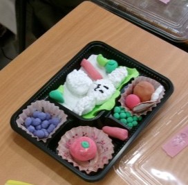 紙粘土とは思えないほど、おいしそうなお弁当が出来上がりました。